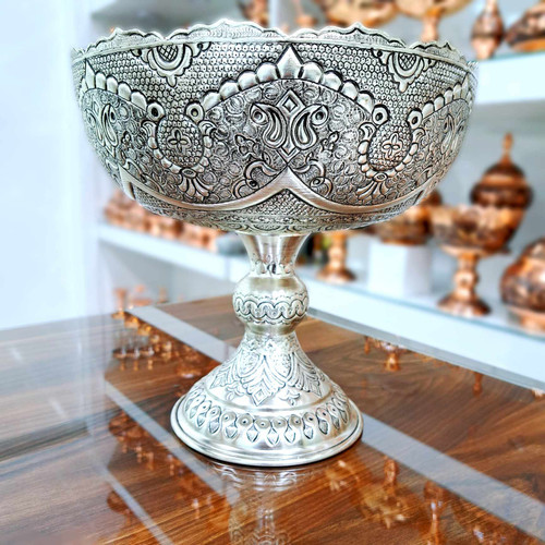 صنایع دستی اشرافی افتخار دارد با به کارگیری ماهرترین و خلاق ترین استادکاران ظروف قلمزنی نقره نما و شبه نقره را تولید و با بهترین قیمت و با کیفیتی بی نظیر به هنردوستان و مردم شریف ایران زمین تقدیم کند و نقشی در زنده نگه داشتن این هنر باستانی و تمدن غنی ایران زمین داشته باشد. صنایع دستی اشرافی تولید کننده برتر ظروف قلم کاری اصفهان با آبکاری نقره میباشد که مفتخر است ظروف قلمزنی نقره نما اصفهان را تولید و بدون واسطه به دست مصرف کنندگان و فروشگاه دارن عزیز برساند.