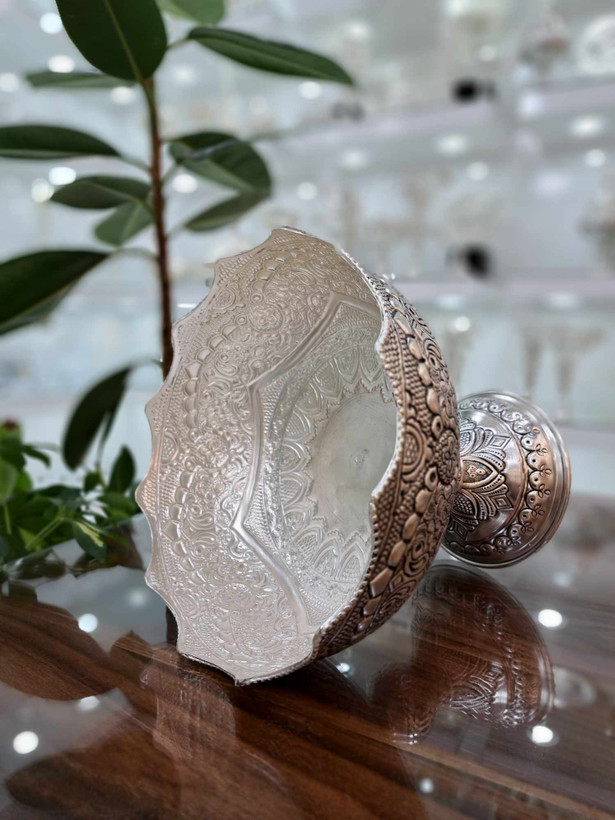 میوه خوری قلمزنی نقره نما با روکش نقره و قلم اسلیمی سایز 25