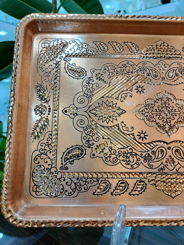 سینی مسی مستطیل سایز متوسط الماس تراش نانو شده