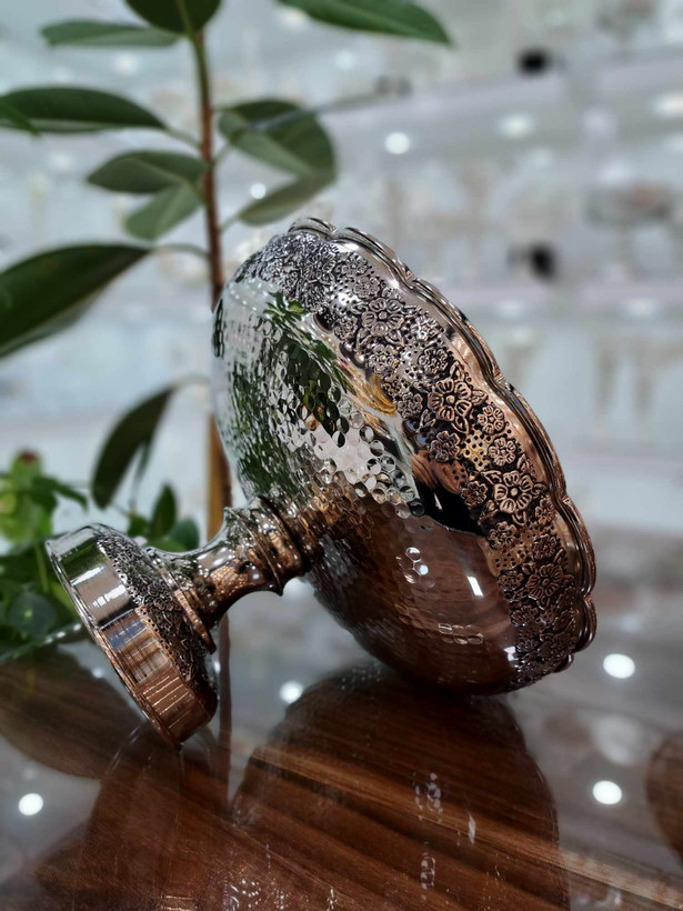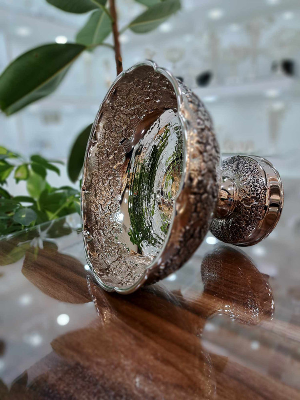 سرویس پذیرایی مسی روکش کروم گلبرگ مدل ریز گل نانو شده، ترکیبی خیرهکننده از اصالت صنایع دستی ایرانی و درخشش مدرن فلز مس با روکش کروم است. این مجموعه نفیس شامل میوهخوری، شیرینیخوری، شکلاتخوری و کاسه آجیلخوری میباشد و با طراحی گلبرگهای ظریف و نقشهای گل ریز، جلوهای لوکس و چشمنواز به میز پذیرایی شما میبخشد.