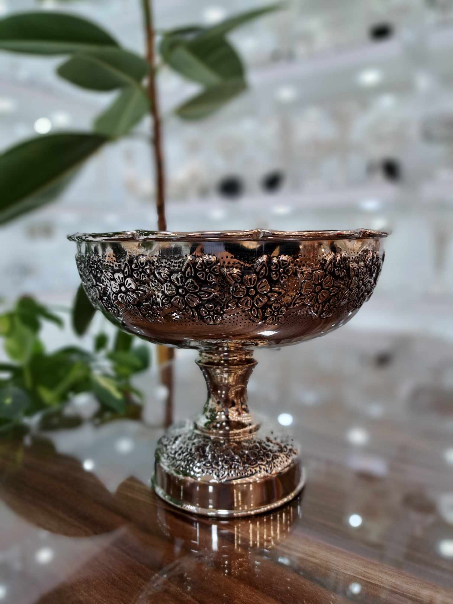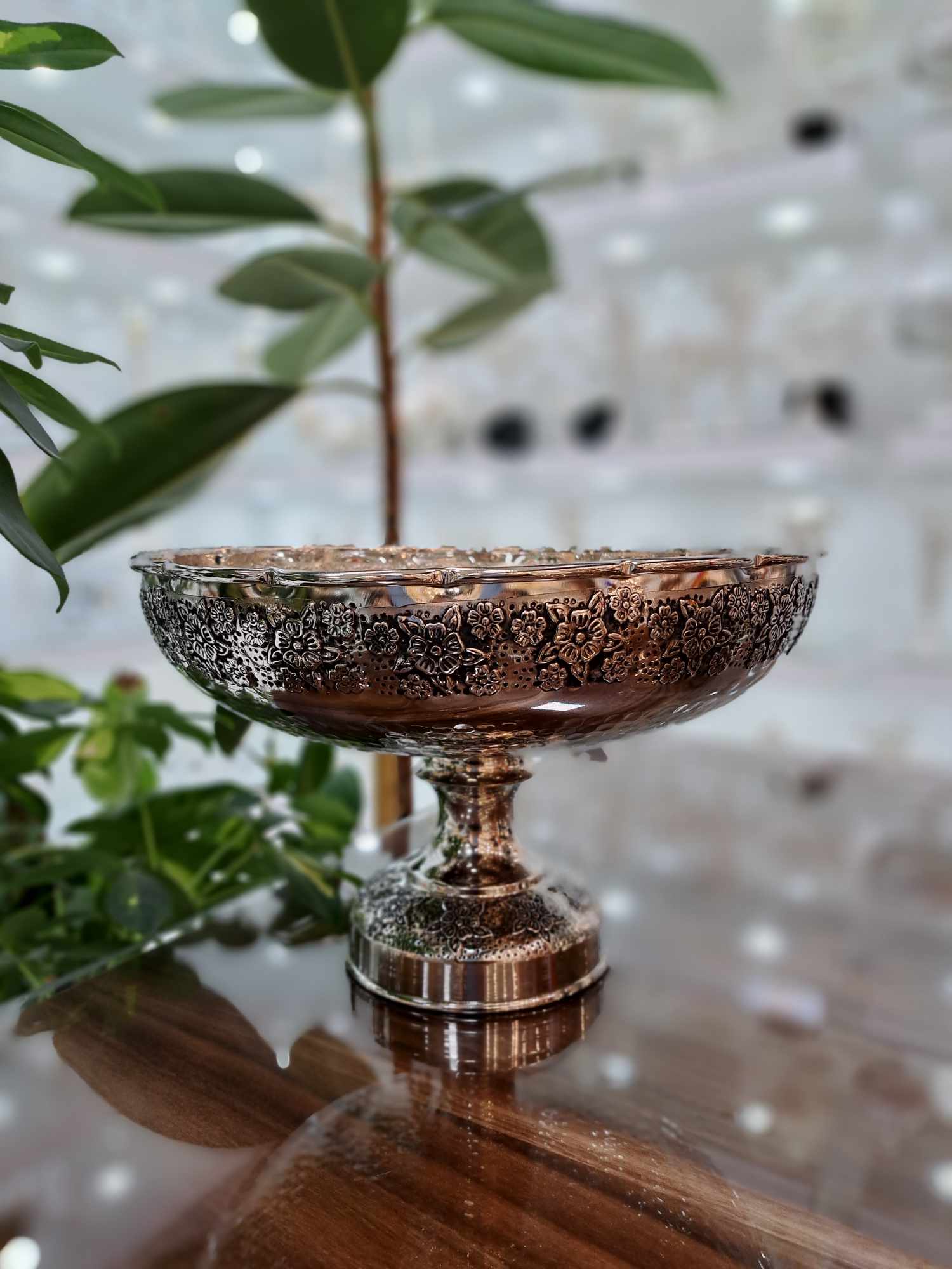 سرویس پذیرایی مسی روکش کروم گلبرگ مدل ریز گل نانو شده، ترکیبی خیرهکننده از اصالت صنایع دستی ایرانی و درخشش مدرن فلز مس با روکش کروم است. این مجموعه نفیس شامل میوهخوری، شیرینیخوری، شکلاتخوری و کاسه آجیلخوری میباشد و با طراحی گلبرگهای ظریف و نقشهای گل ریز، جلوهای لوکس و چشمنواز به میز پذیرایی شما میبخشد.