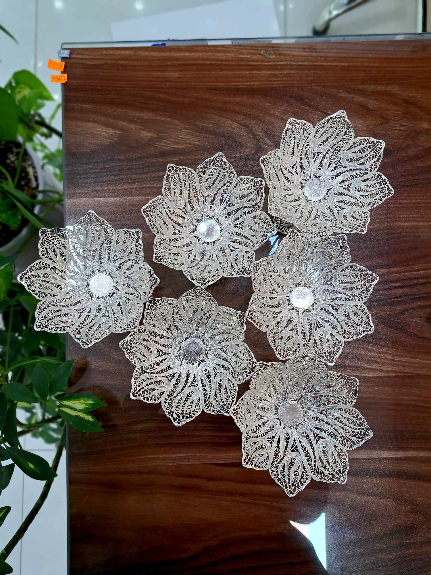سرویس آجیل خوری ملیله کاری 7 پارچه با آبکاری نقره مناسب هفت سین و پذیرایی