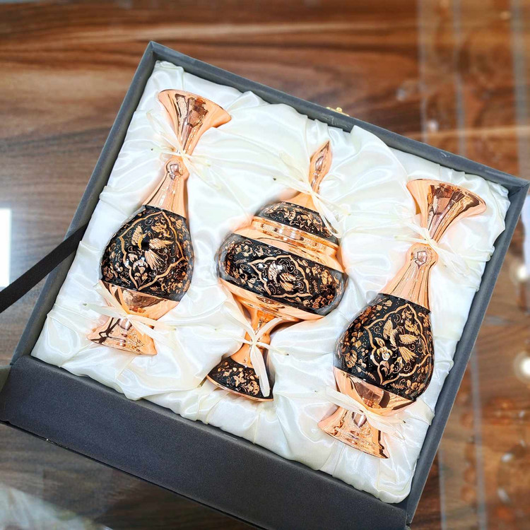 صنایع دستی اشرافی با به کارگیری بهترین و ماهرترین استادکاران ظروف مسی الماس تراش را تولید میکند.